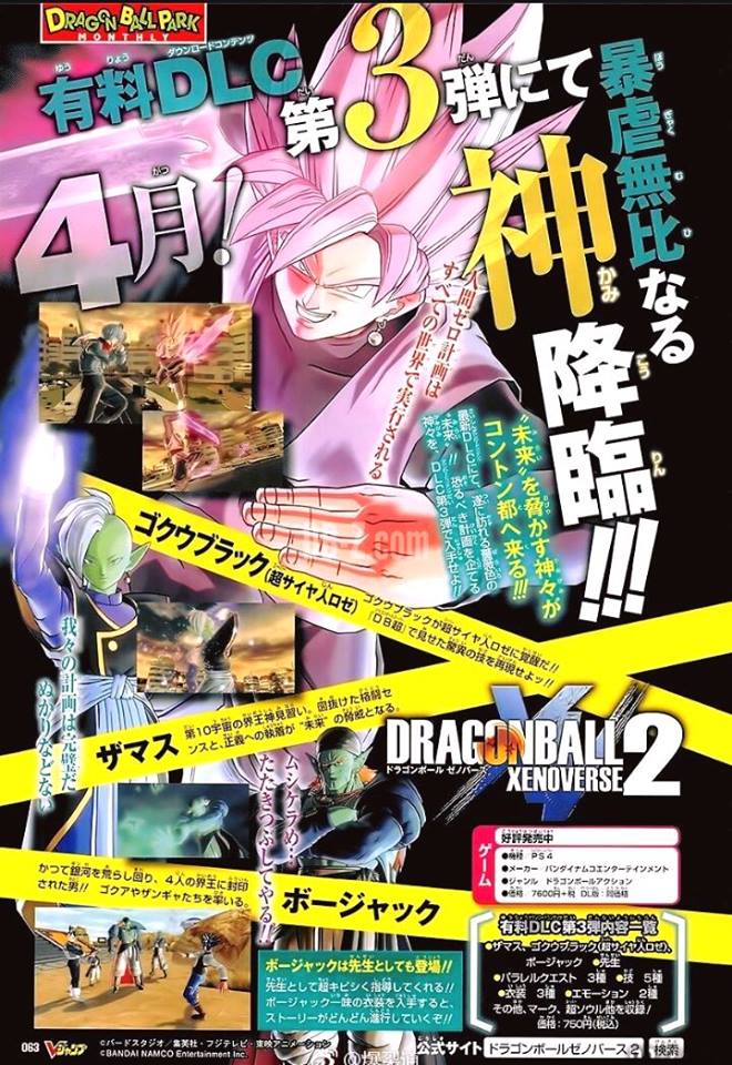 Nel prossimo DLC di Xenoverse 2 saranno presenti Black Goku Super Saiyan Rosè,Zamasu,Bojack.
